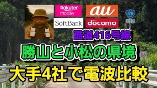 電波調査 福井県の酷道である国道416号線で楽天モバイルドコモauソフトバンクの4社で電波比較 福井県勝山市と石川県小松市を結ぶ林道、国道416号線をドライブしながら携帯会社4社の電波を比較してみました。福井県勝山市の町中を出発し、国道416号線で峠道を超え、石川県小松市の十二ヶ滝へ向かいます。調査した携帯会社楽天モバイルドコモ(ah... 2025.10.14 電波調査
