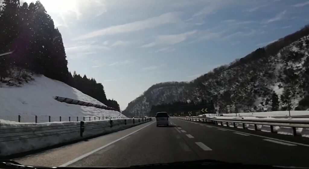一日目のコースは、福井県南条サービスエリア→神戸市です。ここ福井県の南条サービスエリアを出発し、北陸自動車道をひたすら走ります。