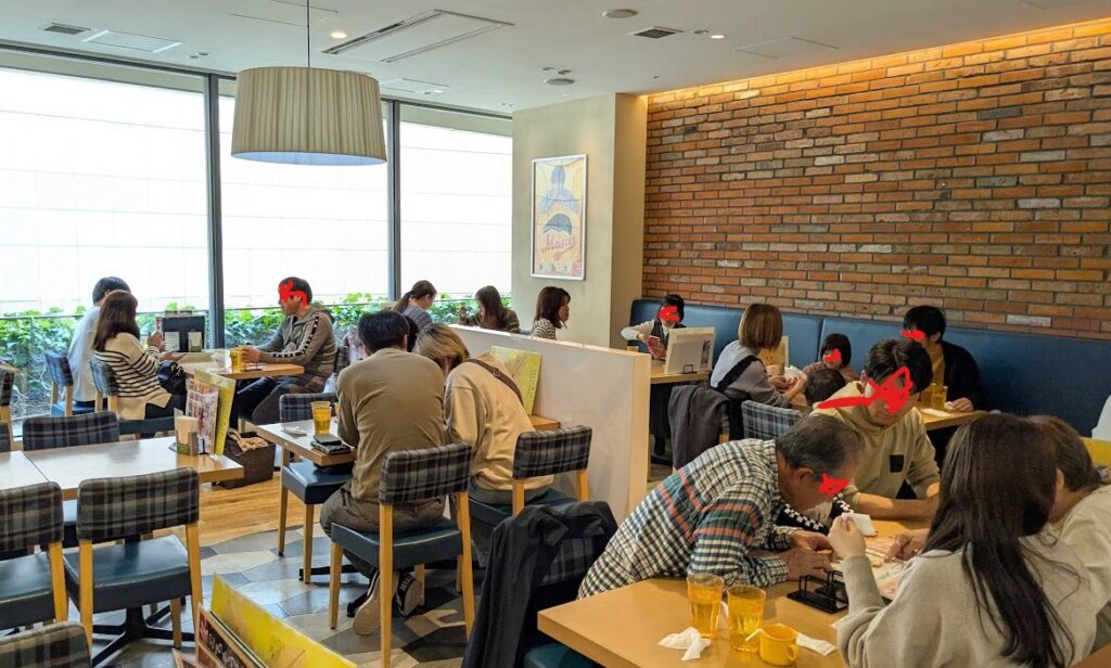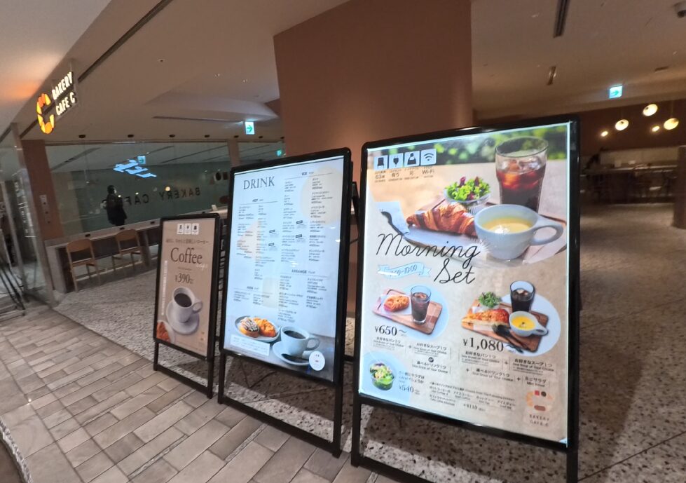 駅近くの室内にカフェを見つけたのでモーニング、月曜日8:20