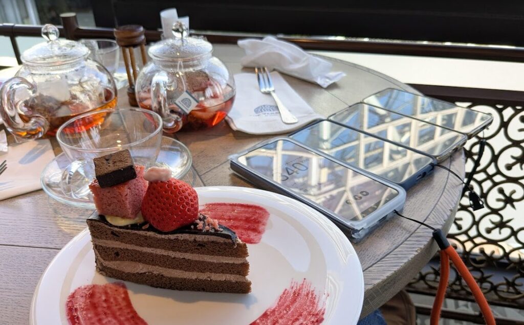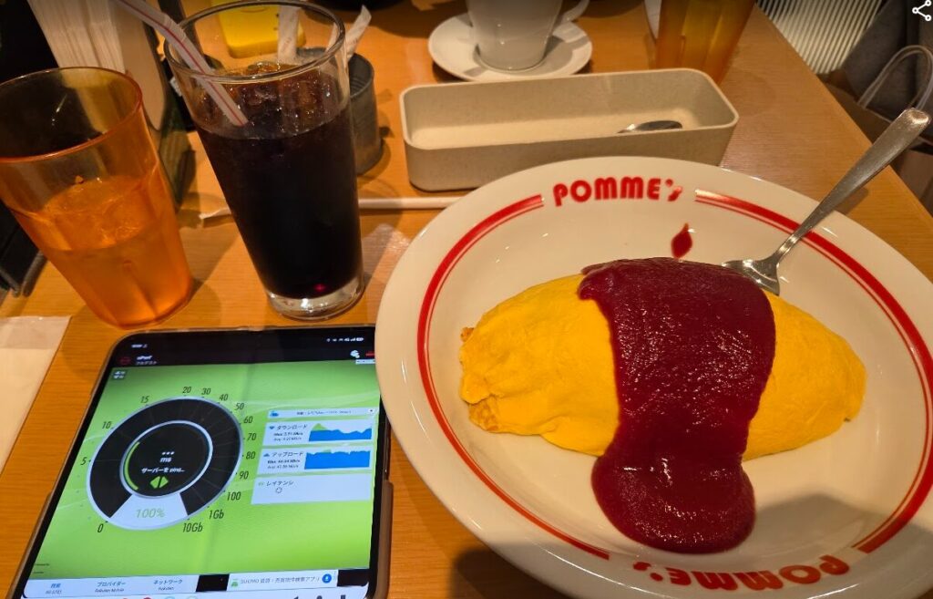 このカフェ内でケーキを食べながら通信テストを実施。土曜日15:10