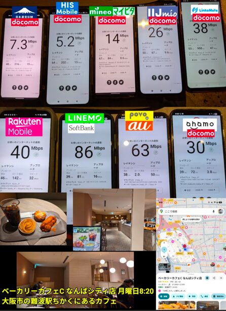 このような普段の日常フェイズでは各社とも良好な速度、このカフェで朝のニュースを見て意識高い系を演じるのも悪くなさそうである。