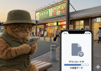 サービスエリアに停車するたびにいちいち動画をダウンロードしていては、スマホ容量がいっぱいに満員状態となり、入居者募集の看板を即刻取り払わねばならない事態になってしまう。