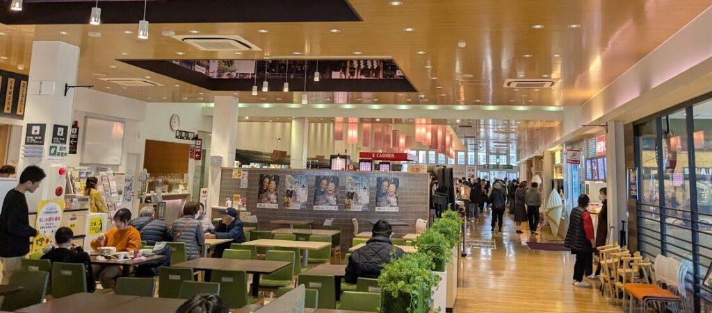 さきほどの神田パーキングエリアと違ってかなり大きな施設であり、レストラン街も多くお昼前ということもあり、家族連れの客が多かった。