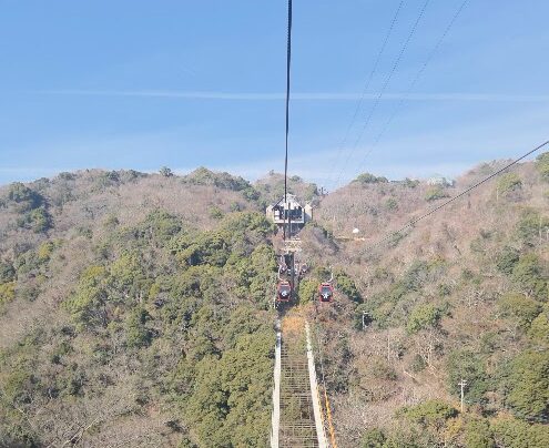 通信テストを終えたら、またロープウェイで山を下り、下界に降りる。