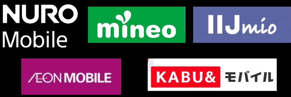 NUROモバイル、mineo、IIJmio、イオンモバイル、カブアンドモバイルなどがあります。