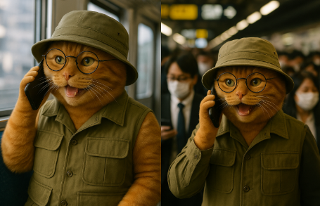 - 電車や車の移動中に電話する人