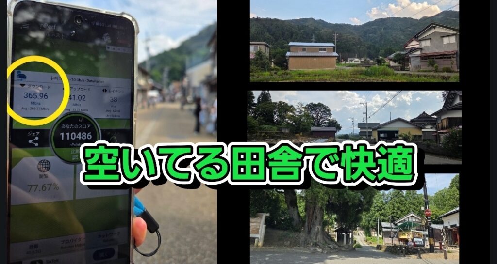 例えばこんな場面の田舎なら、楽天モバイルの回線も空いていて快適な音質で通話ができます。