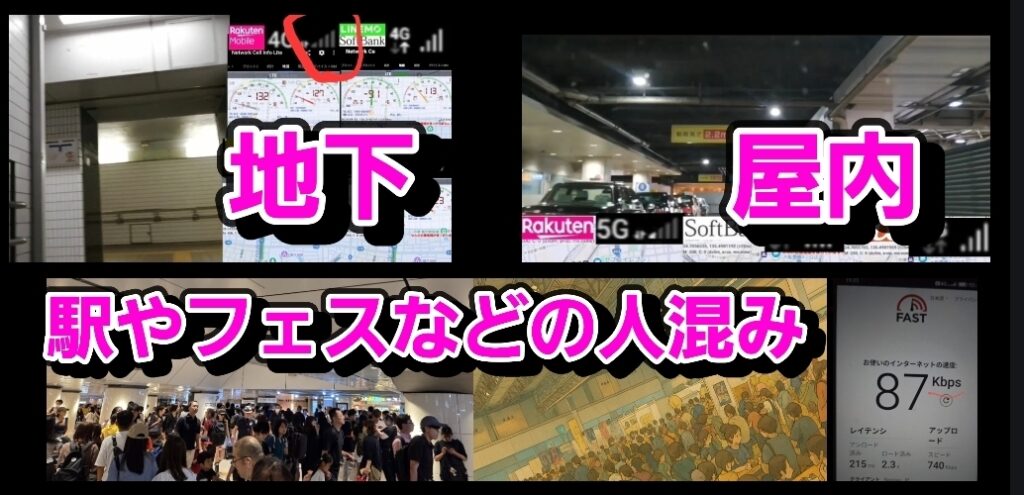 楽天モバイルは、主にこのような場面で電波ピクトが立たない、もしくは通信速度が落ち、電話が聞こえにくくなります。