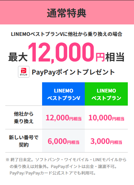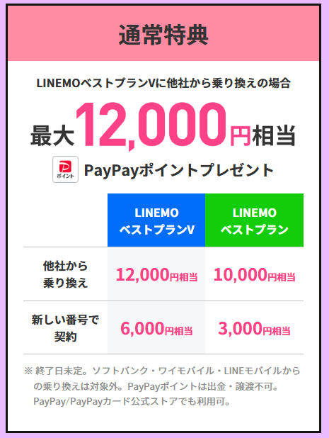 さらに下記のリンクからLINEMOを申し込めば、契約後の7か月後にPayPayポイントが貰えます。