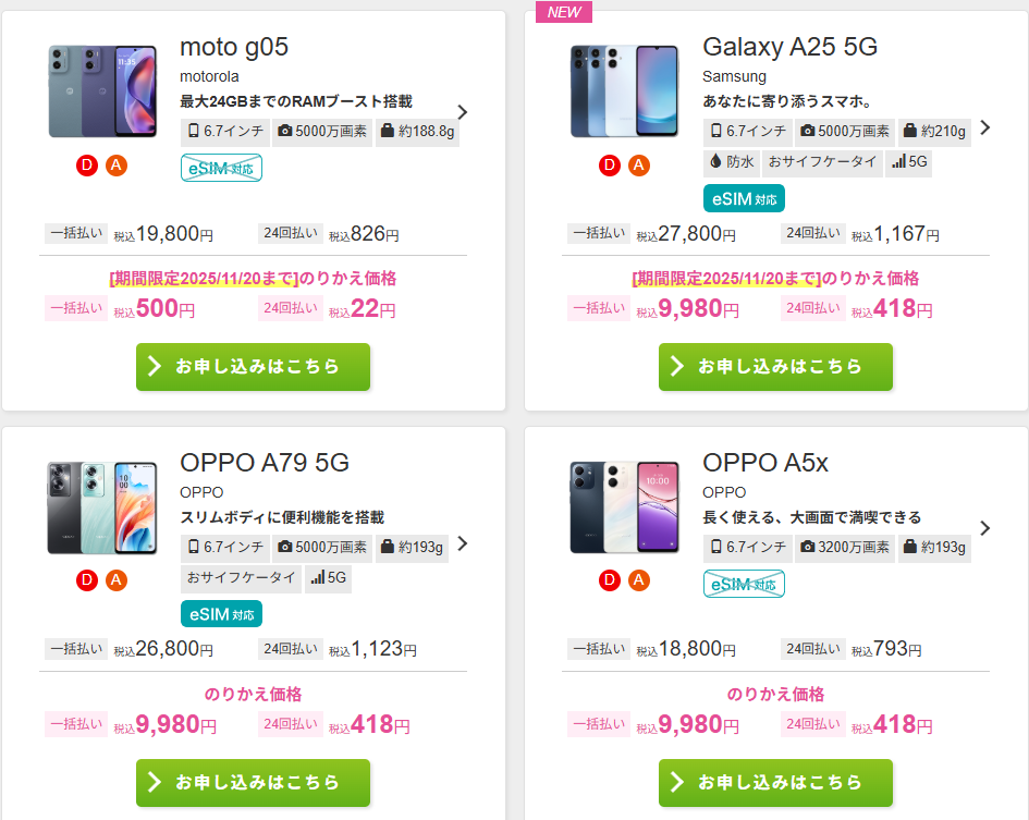 - auやUQmobie利用中(切り替えが楽)