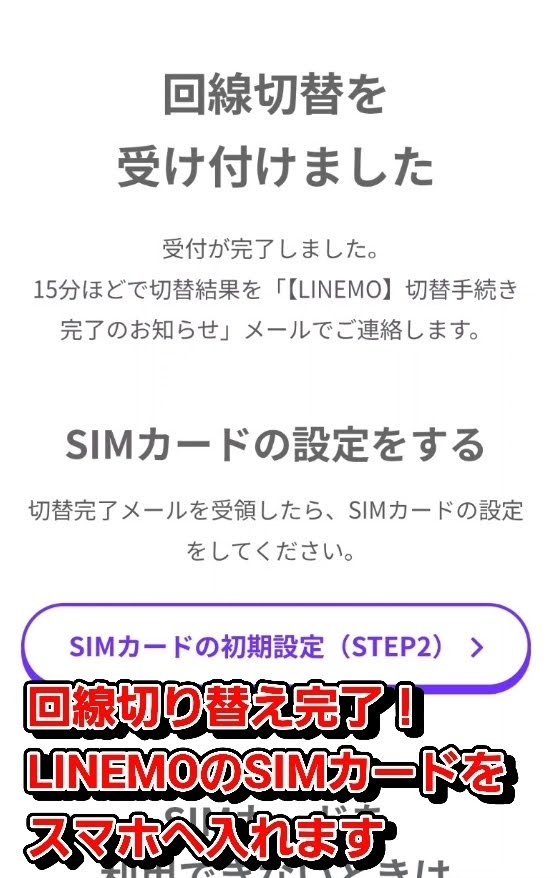 これで元の携帯会社が解約され、LINEMOに回線が切り替わりました。
