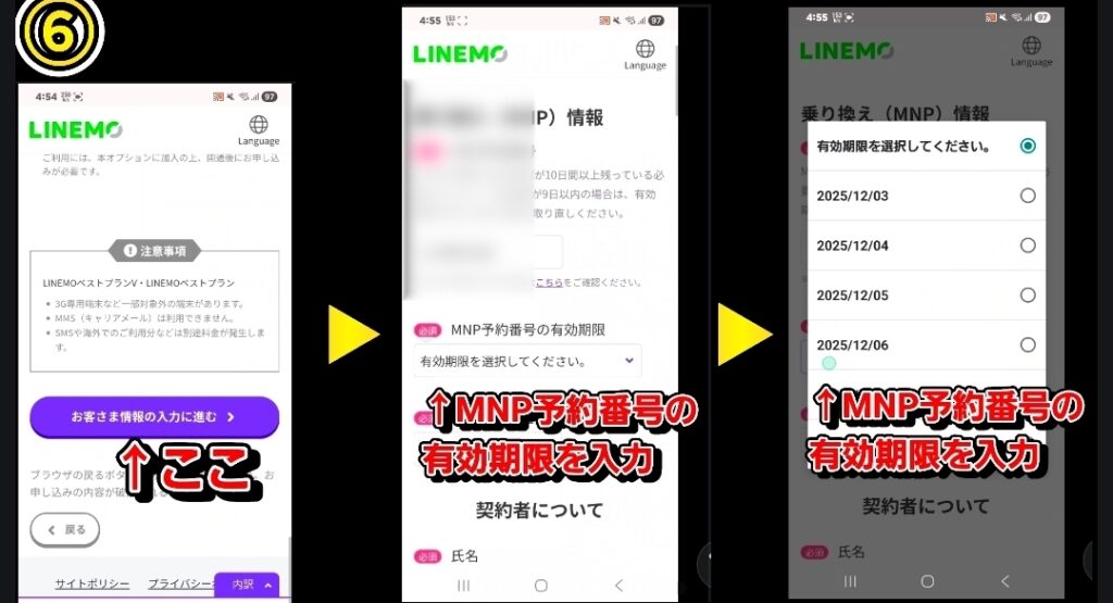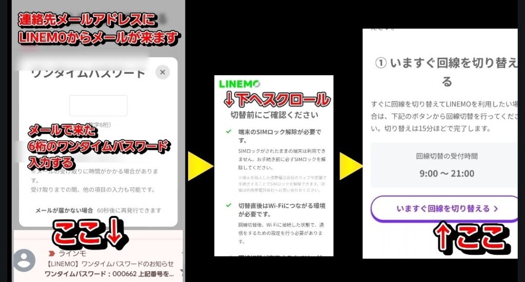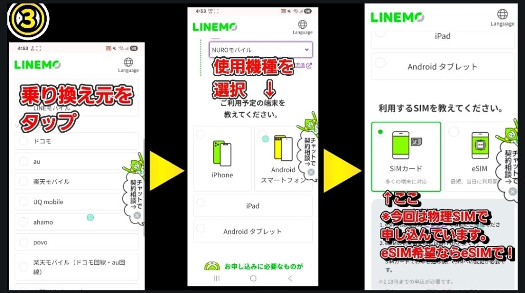 LINEMOへの乗り換え手続きは、以下ステップで完了します。