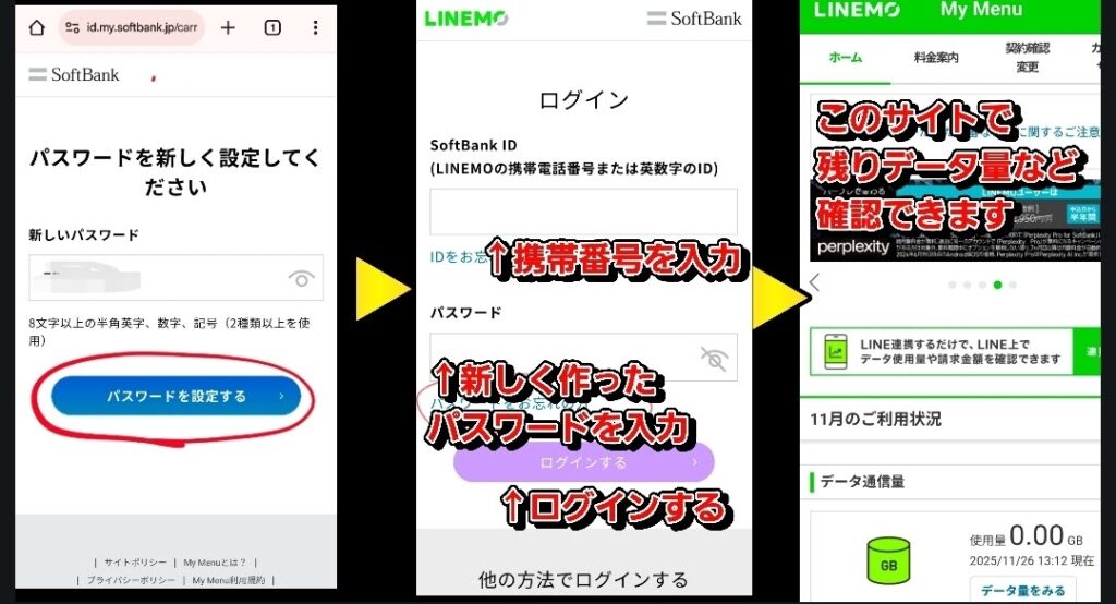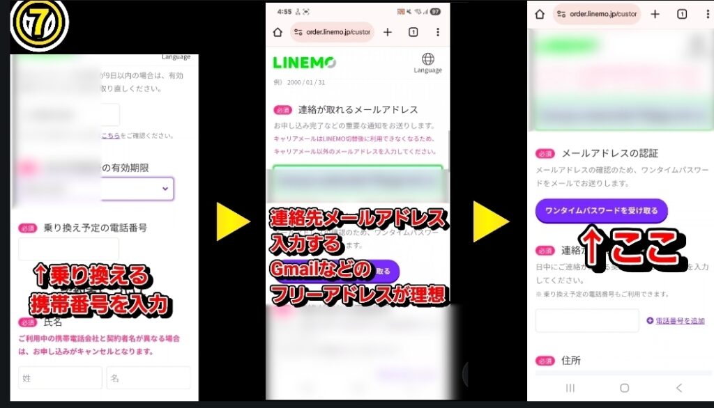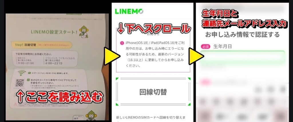 このページでは、LINEMOへの乗り換え手順を図解で解説します。パソコンではなくスマホからの操作を想定しています!