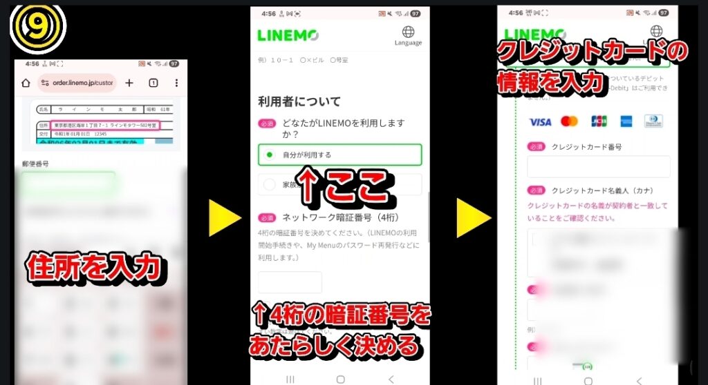 暗証番号は、LINEMOの手続きの時に決めた4桁の暗証番号です。