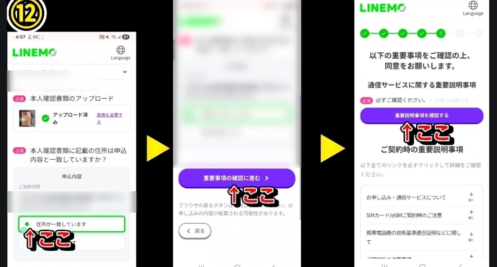 ひたすら、重要事項確認のチェックを入れたりして進んでいきます。