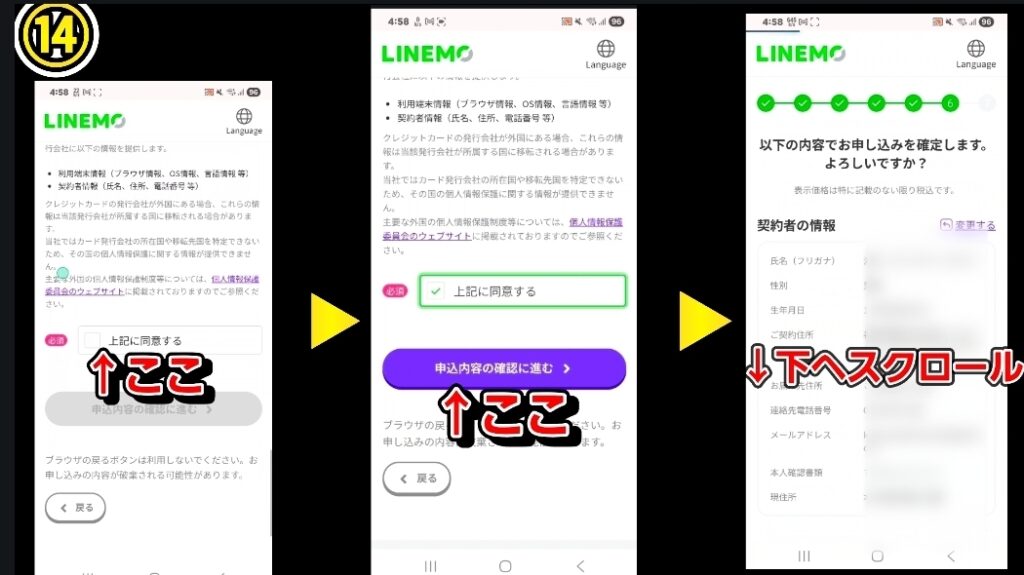 ⑪プライバシーと利用規約が出るので、画面下まで進んで同意するを押します。