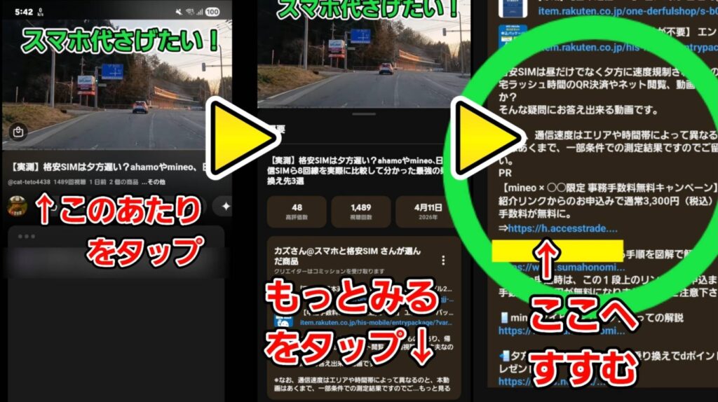 筆者のYouTube動画へ進み、動画の概要をタップします。