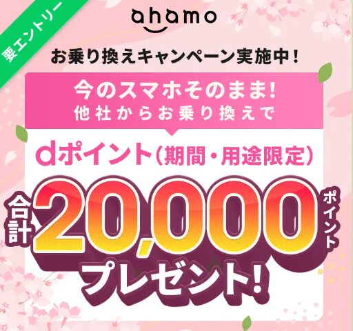 ahamoに乗り換えると、契約の翌月くらいにdポイント4,000pt、これが5ヶ月連続で貰えて合計2万円分貰えます。