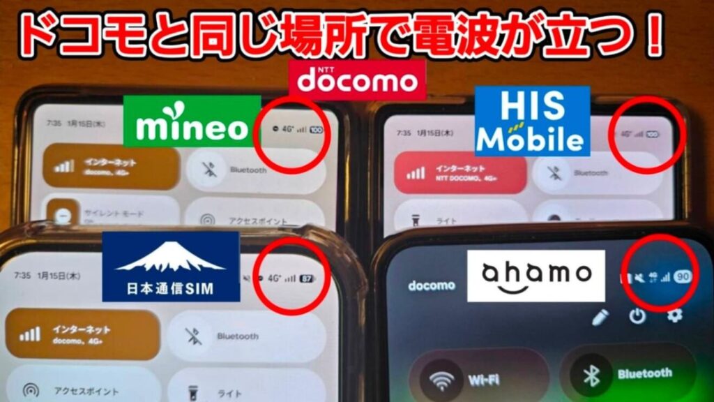 日本通信SIMとドコモの電波は、通信速度が違います。