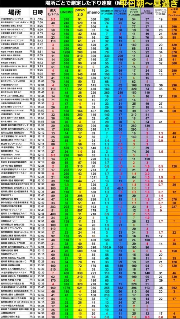 遅い時、特に昼の日本通信SIMの速度を詳しく
