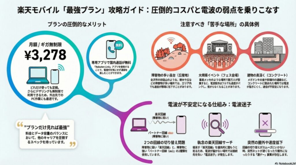 混んでいる駅など、電波が悪い所へ行くことがない人なら、楽天モバイルのギガ無制限と通話かけ放題の恩恵をもろに享受できます。