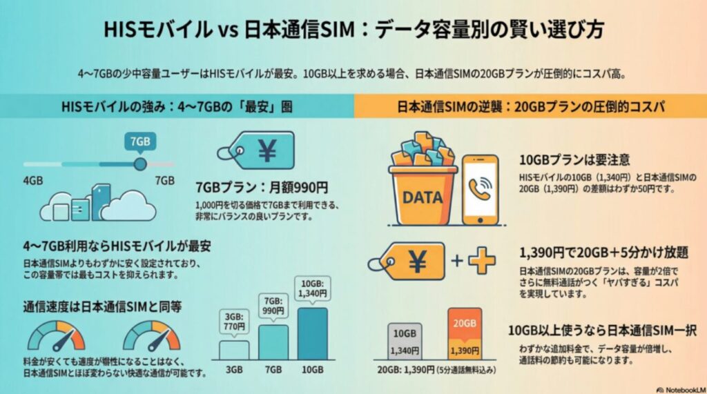 毎月4~7GBならHISモバイルが少し安い
