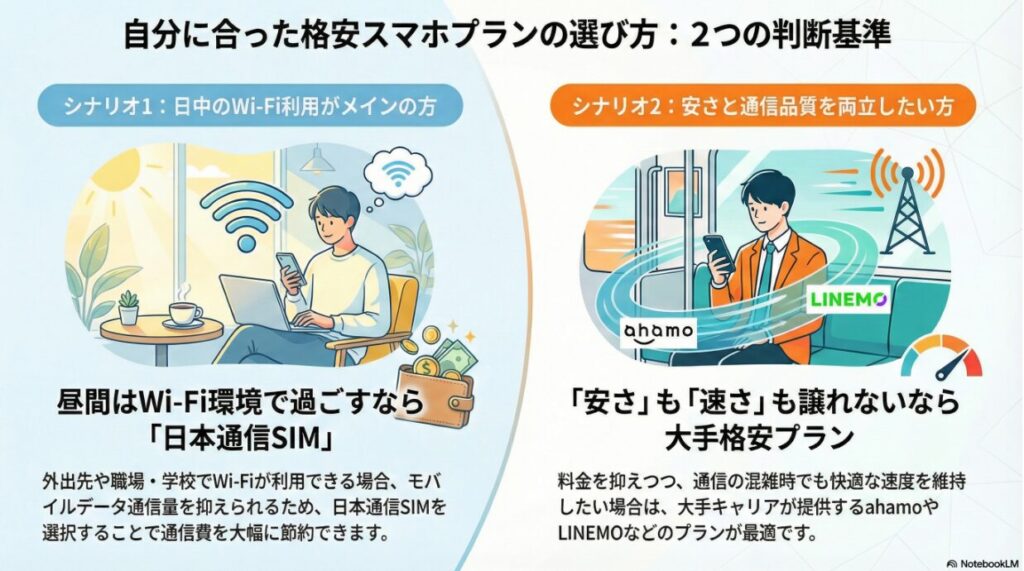 通信費削減が目的なら、まずは料金が爆安の日本通信SIMを起点に考えましょう。