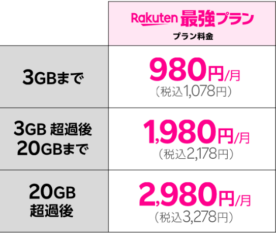 料金も、3GB、10GB、30GBと明確に分かれているので、楽天モバイルのように、データ通信量に合わせたプラン選びも可能です。