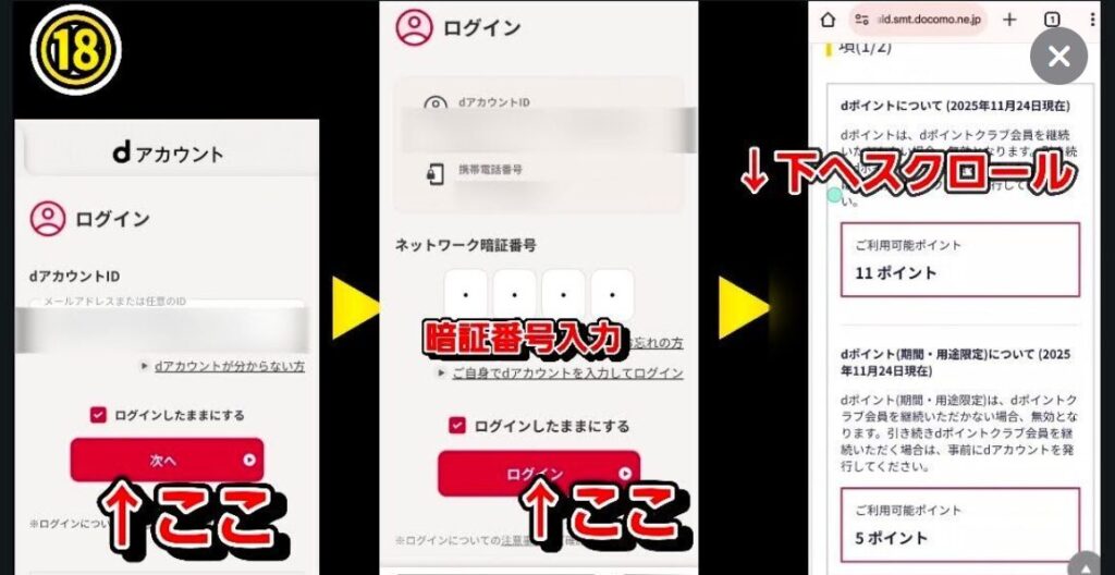 このとき、キャリアごとのIDとパスワードが必要なので、確認しておきましょう。
